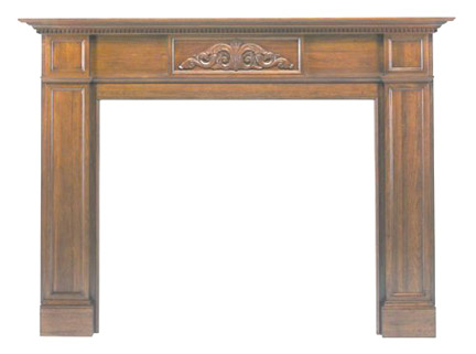 Our largest wood mantel adds elegance and beauty to any living area. Note the detailed scroll cartouche. Solid wood construction. Available in 2 sizes: Large and Small. See product specification page for detailed dimensions. Please double-check dimensions before ordering- all items in this category are nonreturnable & nonrefundable due to weight and handling characteristics.