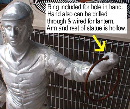 You can be creative with painting the lawn jockey's clothes, hat, boots, and gloves different colors. You can even make him into a soldier or baseball player too! Aluminum doesn't rust, and is lightweight.